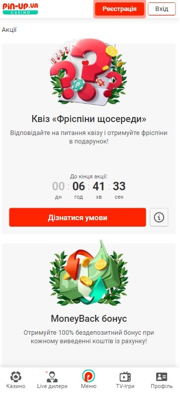 Але все ж таки відмінності є, і вони стосуються оформлення. На відміну від застосунку Pin Up, мобільна версія менш зручна у використанні. Особливо це помітно, якщо проскролити усе меню сайту аж до самого низу. Рекламні банери та картинки занадто розтягнуті, що псує загальний вигляд, а у футері сайту розміщено неклікабельні кнопки, які мають однаковий зміст.