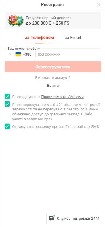 Бонус за реєстрацію 100 грн + 100 грн на персональний бонус в ChampionПривітальні бонуси